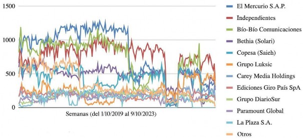 Figura 3 Frecuencia de noticias relevantes por propietario y por semana.