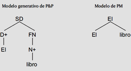 Frente a los modelos anteriores de la gramática generativa como el de Principios y Parámetros (P&P), el programa minimista (PM) se presenta como menos barroco para guardar consonancia con lo que se puede denominar el compromiso biolingüístico: asumir que la lengua es un fenómeno biológico singular, con una estructura de simplicidad y elegancia inusitada. El contraste se puede hacer visible en el siguiente esquema