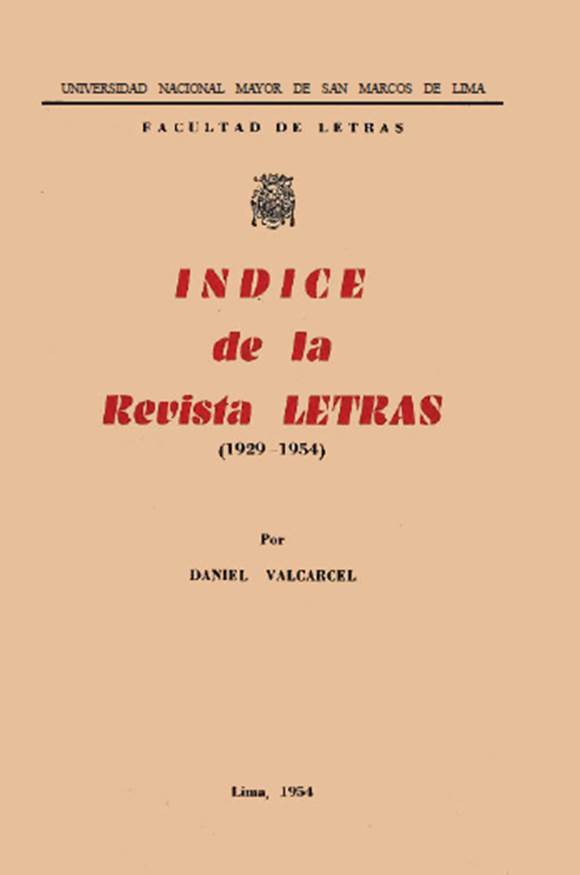 Tras veinticinco años de trabajo editorial y más de cincuenta números, Daniel Valcárcel ofreció en 1954 un Índice bibliográfico de la revista Letras (Figura 2) con el propósito de dar cuenta del "derrotero para el conocimiento de los tópicos tratados desde el número inicial" (p. 5). En la introducción de este índice, presentó una revisión de otras revistas de la hemeroteca universitaria. Como lectores de este siglo, sin duda resulta interesante la mención de algunas revistas que no continuaron. Entre estos proyectos sanmarquinos, destacan las publicaciones decimonónicas Revista Generales y Anales Universitarios del Perú, ambas fundadas en 1862. Sin embargo, la primera tuvo un abrupto final en 1881 tras la ocupación militar de Lima. La segunda, Anales, se mantuvo por cuarenta y cuatro años hasta 1906. Como director de una revista con menor trayectoria, estos referentes editoriales debieron servir para Valcárcel como una referencia para el crecimiento de Letras, también para reconocer la fragilidad de la academia en el Perú. No obstante, para nosotros, como editores de una revista con más de nueve décadas, son ejemplos de todos los posibles obstáculos que Letras ha atravesado desde su fundación, así como el compromiso de la Facultad por mantener este órgano durante todos estos años.