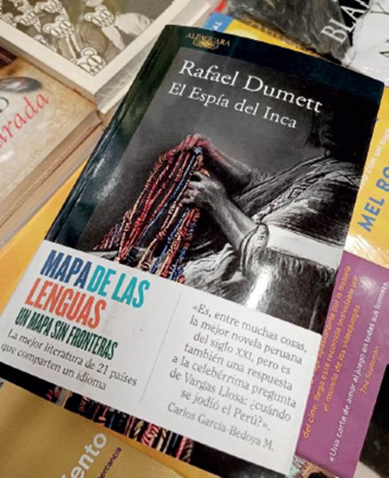 Figura 6 Portada de la novela El Espía del inca, de Rafael Dumett, con texto de Carlos García-Bedoya, publicado por Letras (Lima).